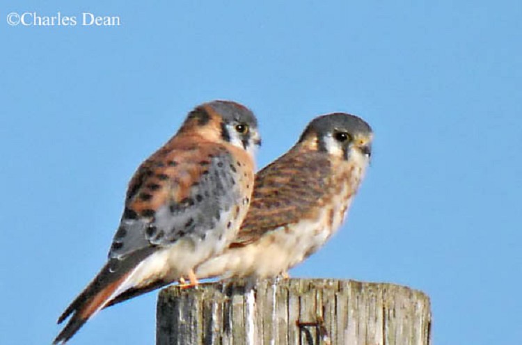 Photo on right shows "scapular 'V' " the pattern of tan fathers on the birds middle to upper back
